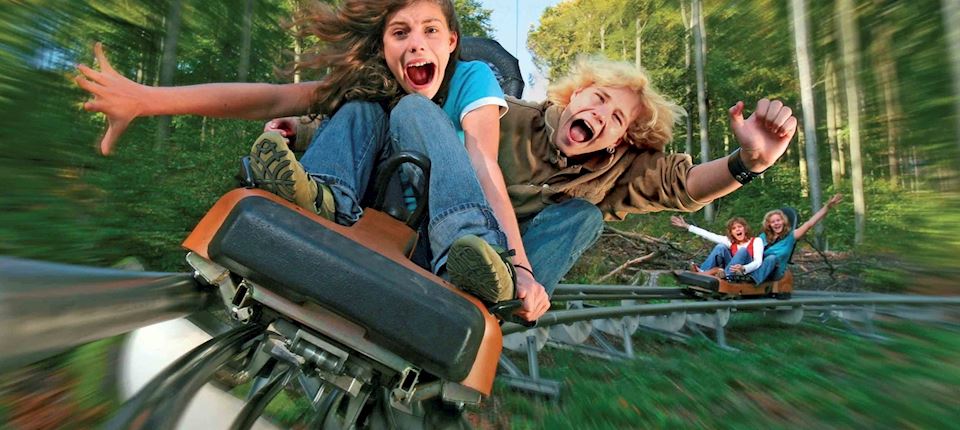Der Freizeitpark „Fort Fun Abenteuerland“ mit 40 außergewöhnlichen Attraktionen, wie Achter- und Wasserbahnen, Aussichtspunkten und Shows in beeindruckender Berglandschaft und im Wildwest-Stil, ist das ideale Ausflugsziel für die Familie.