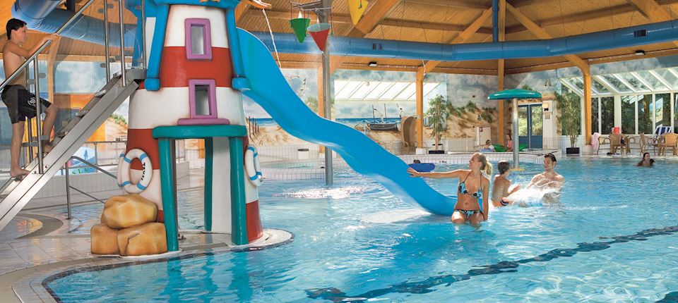 Hier wird Wasserspaß groß geschrieben, nicht nur im und am Meer. Auch das Hallenschwimmbad im Park bietet der ganzen Familie Schwimmvergnügen. Und während die Kleinsten im Kinderplanschbecken herumtollen, werden die größeren Kids nicht müde, die Rutsche immer wieder aufs Neue herabzusausen.