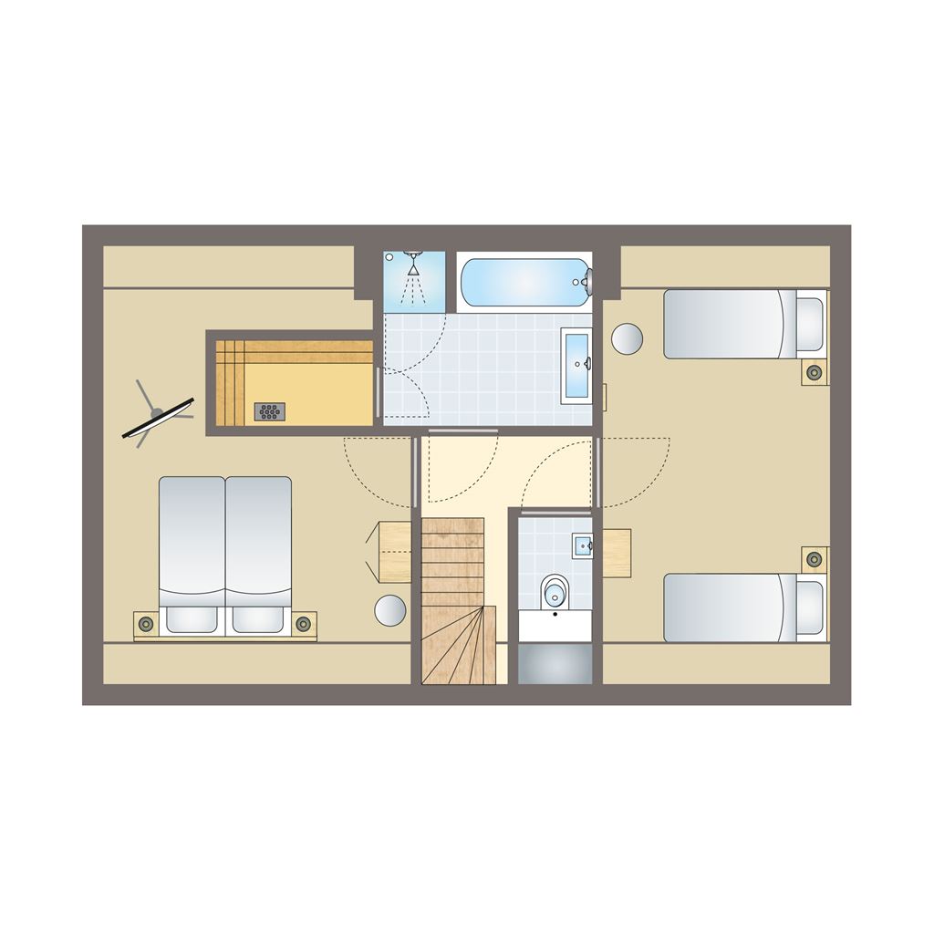 - Badezimmer (vom Schlafzimmer begehbar) mit ebenerdiger Dusche im Erdgeschoss