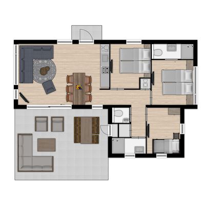 - Für 4 Erwachsene und 2 Kinder geeignet