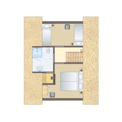 - Badezimmer mit ebenerdiger Dusche, Sonnendusche und WC auf der ersten Etage