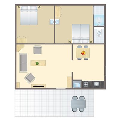 - Zwei Schlafzimmer mit jeweils zwei Einzelbetten und Waschbecken