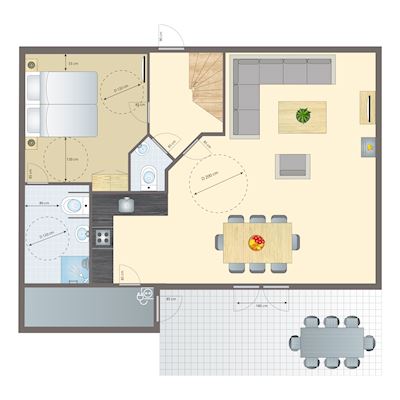 - Aufgrund der max. Türbreite von 75 cm ist dieses Ferienhaus nur für kleine Rollstühle zugänglich