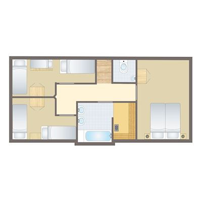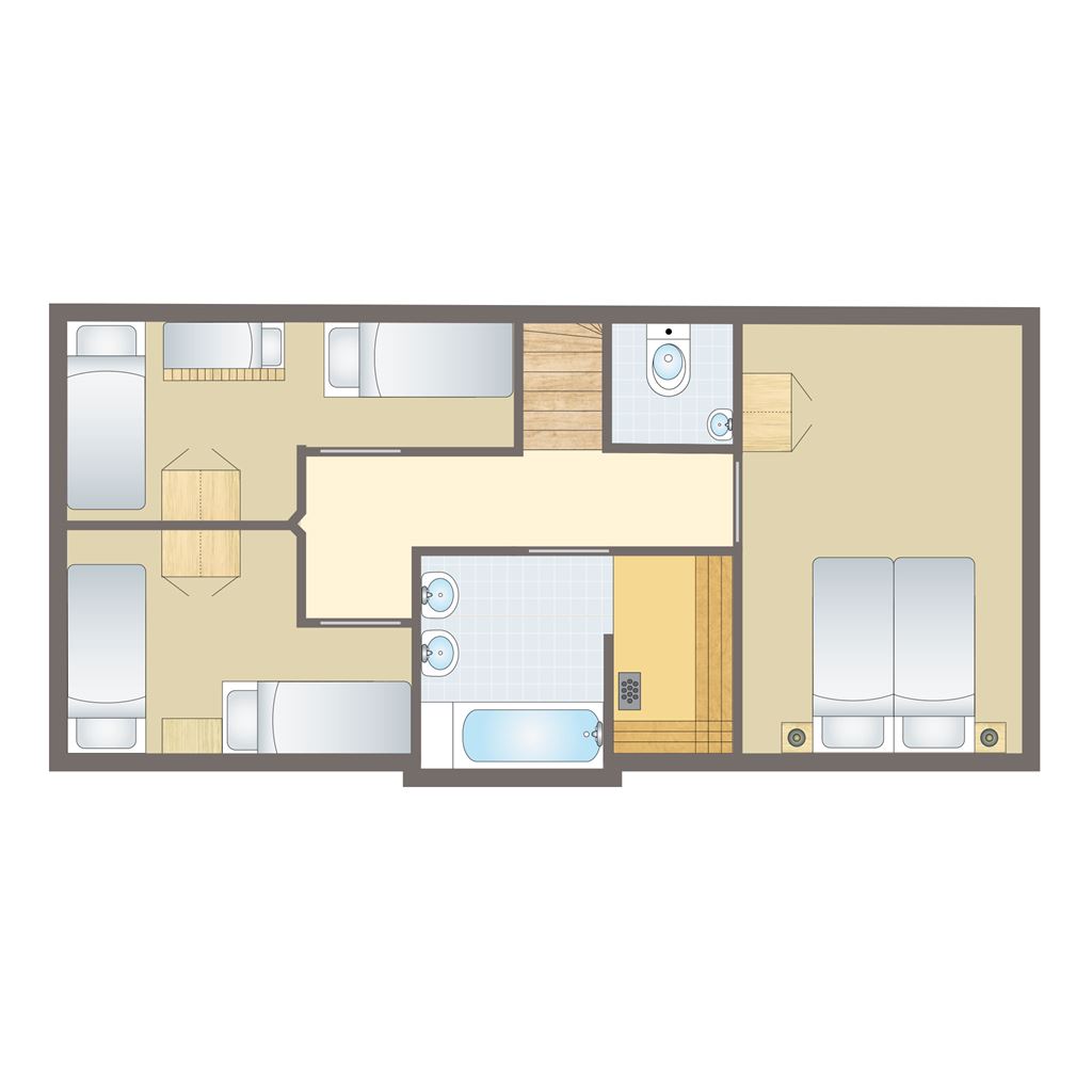 - Drei Schlafzimmer mit jeweils zwei Auping Boxspring-Einzelbetten auf der ersten Etage