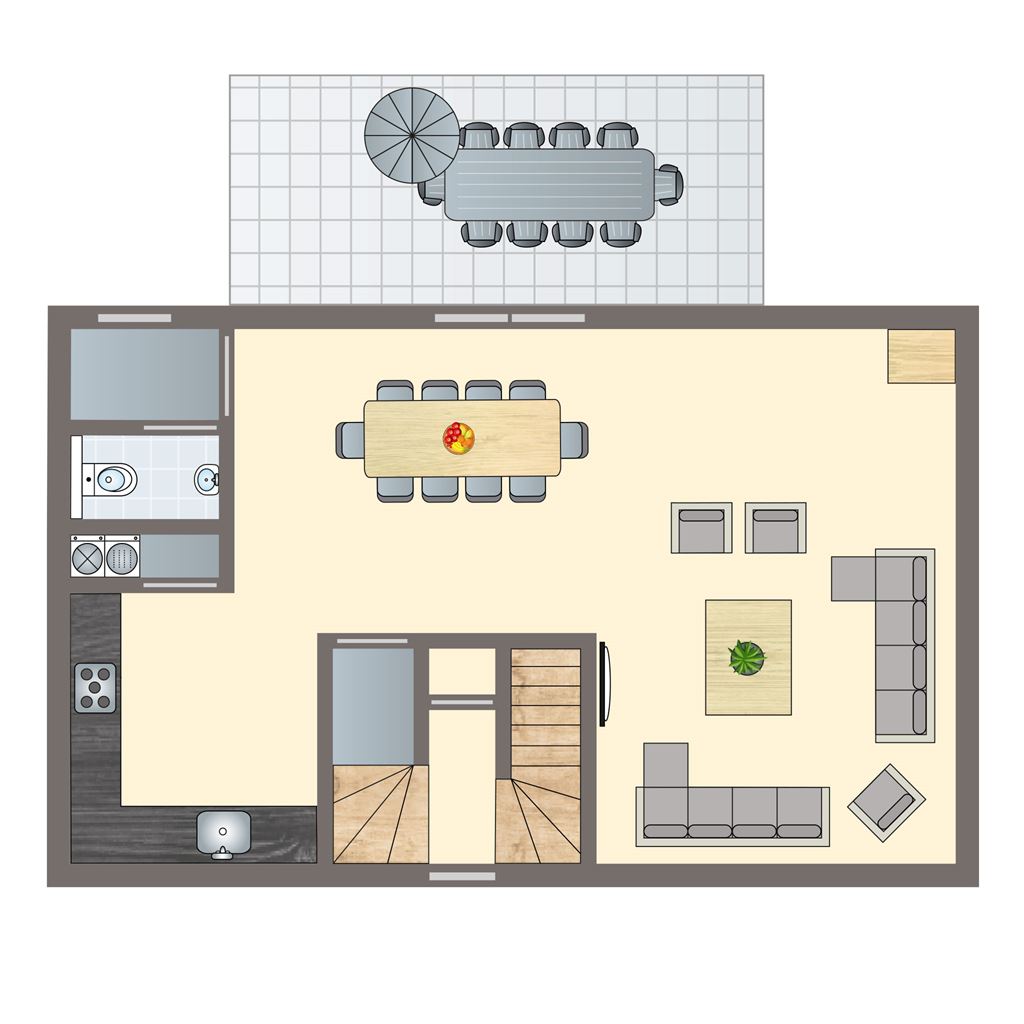 - Badezimmer (vom Schlafzimmer begehbar) mit Dusche auf der ersten Etage