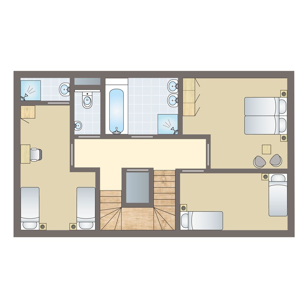 - Zwei Schlafzimmer mit jeweils zwei Boxspring-Einzelbetten auf der zweiten Etage
