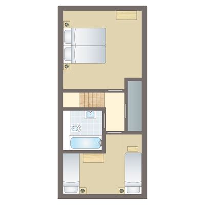 - Zwei Schlafzimmer mit jeweils zwei Boxspring-Einzelbetten im Untergeschoss