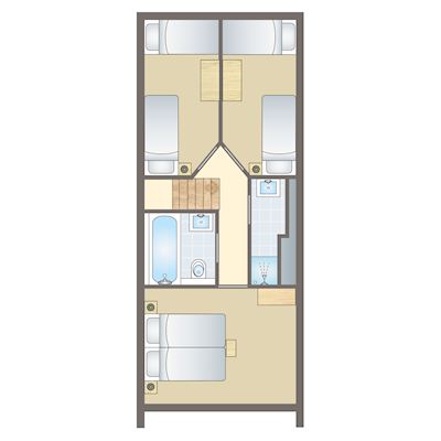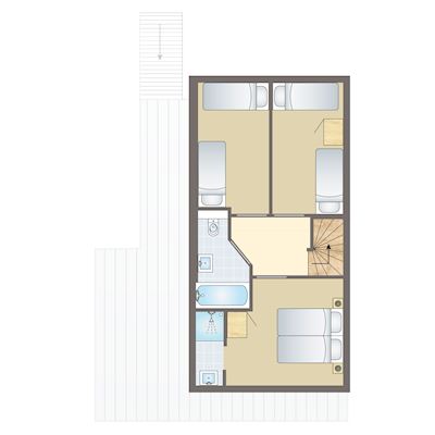 - Drei Schlafzimmer mit jeweils zwei Einzelbetten auf der ersten Etage