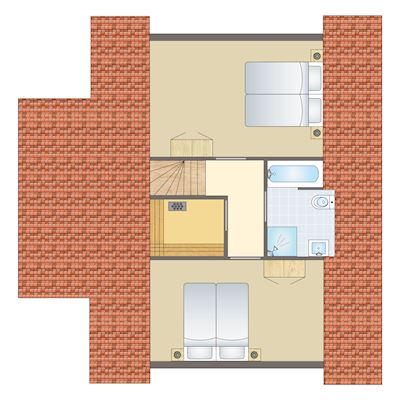 - Zwei Schlafzimmer mit jeweils zwei Boxspring-Einzelbetten auf der ersten Etage