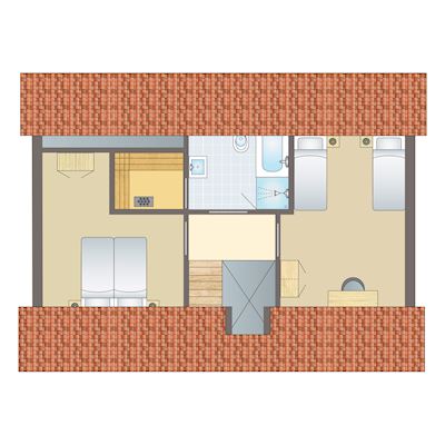 - Schlafzimmer mit zwei Boxspring-Einzelbetten auf der ersten Etage