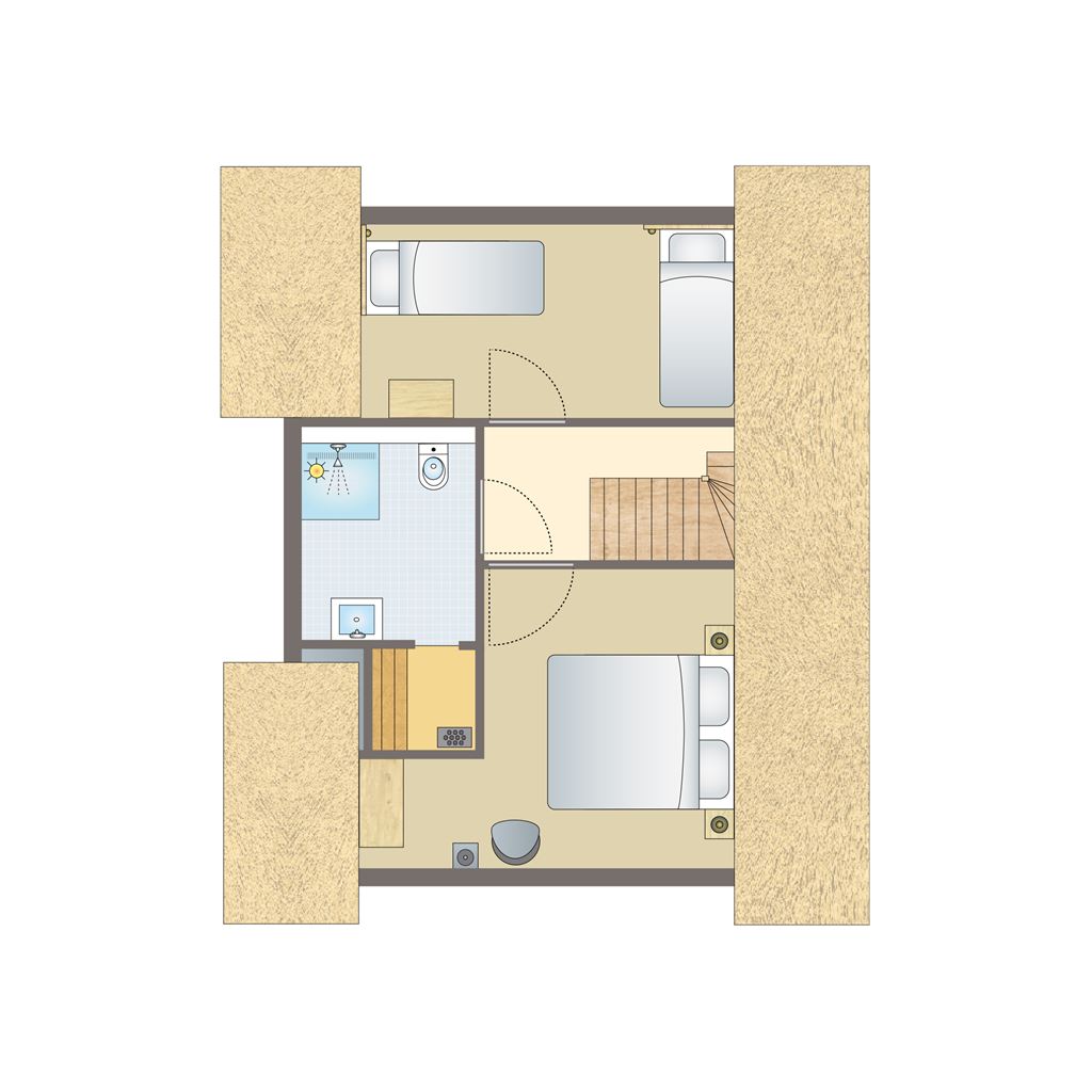 - Badezimmer mit ebenerdiger Dusche, Sonnendusche und WC auf der ersten Etage