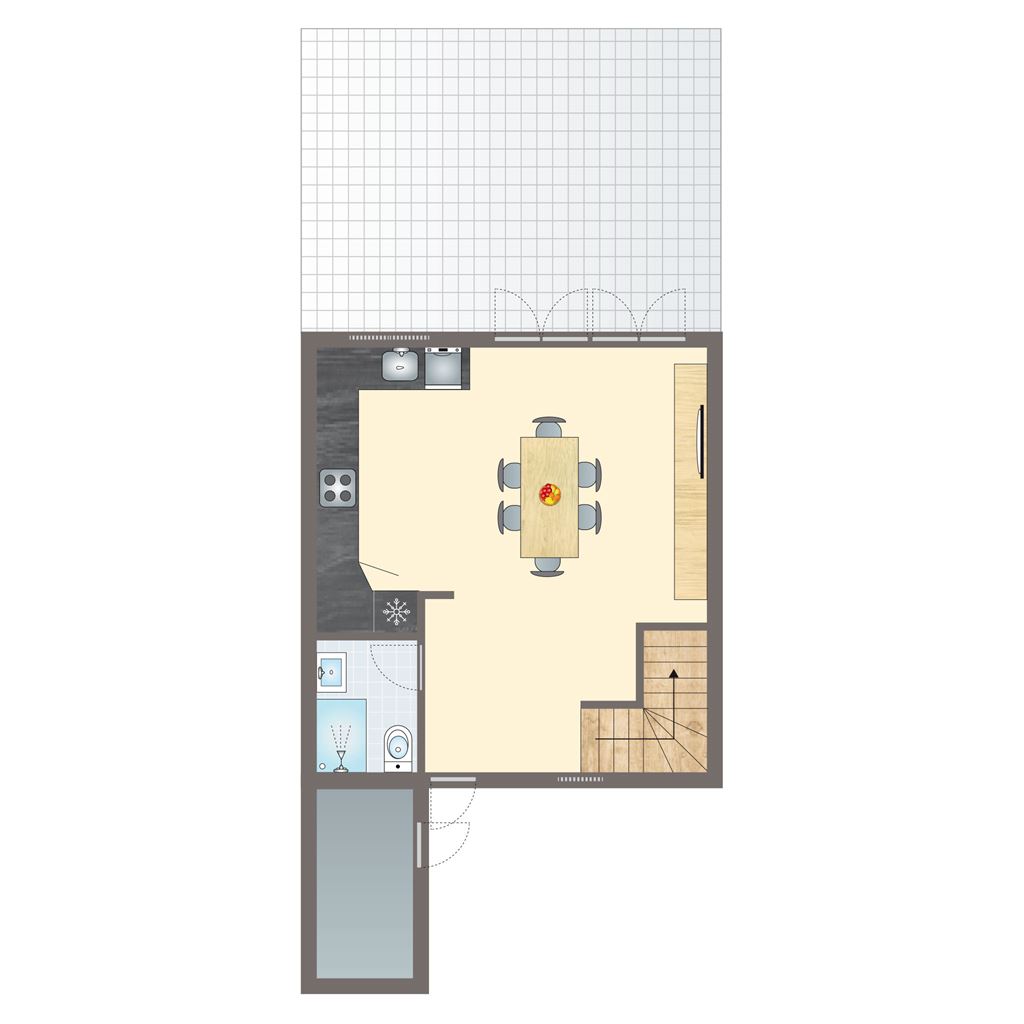 - Über eine Treppe erreichbar