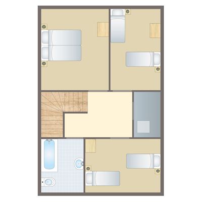 - Zwei Schlafzimmer mit jeweils zwei Boxspring-Einzelbetten auf der ersten Etage