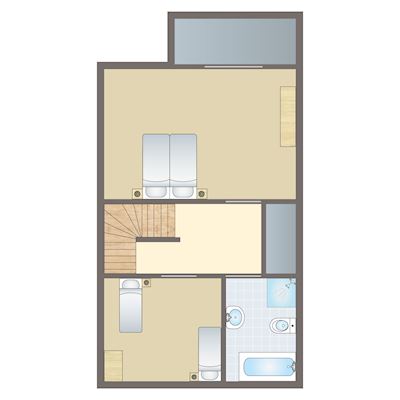 - Zwei Schlafzimmer mit jeweils zwei Boxspring-Einzelbetten auf der zweiten Etage