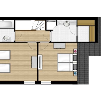 - Zwei Schlafzimmer mit jeweils zwei Boxspring-Einzelbetten