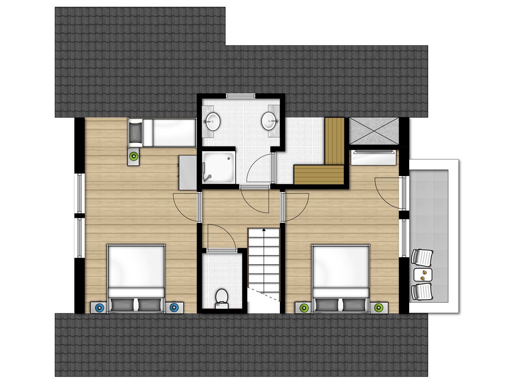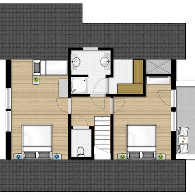 • Schlafzimmer mit zwei Boxspring-Einzelbetten