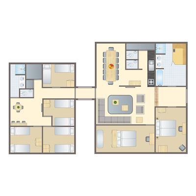 - Vier Schlafzimmer mit jeweils zwei Auping Boxspring-Einzelbetten