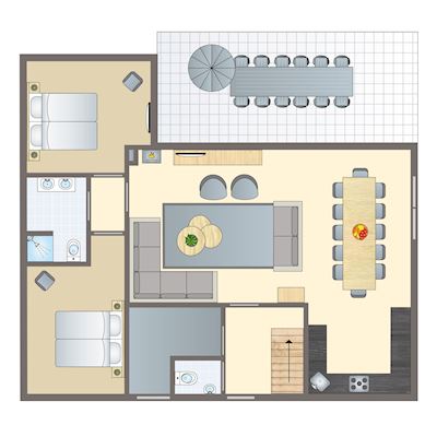 - Badezimmer mit Sonnendusche auf der ersten Etage
