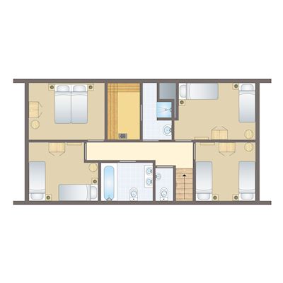 - Drei Schlafzimmer mit jeweils zwei Auping Boxspring-Einzelbetten auf der ersten Etage