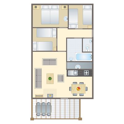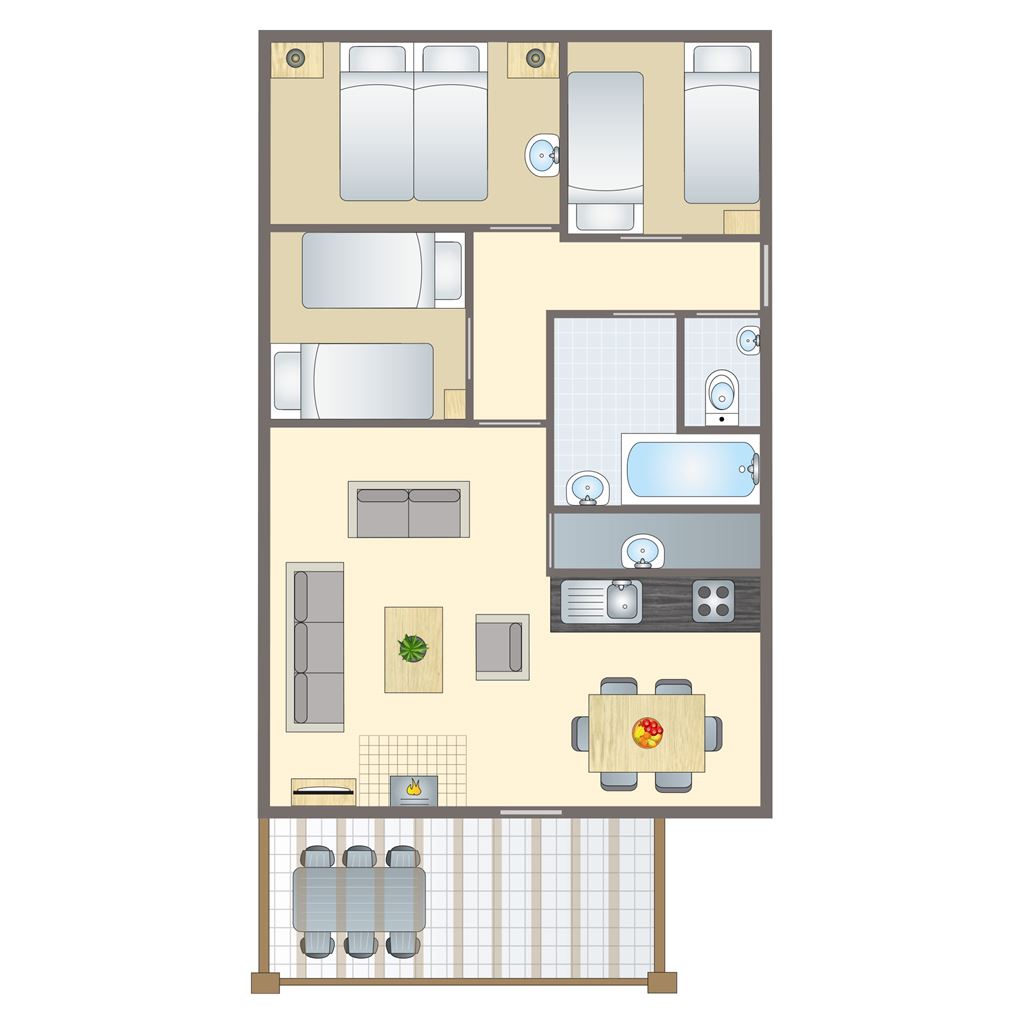 - Zwei Schlafzimmer mit jeweils zwei Boxspring-Einzelbetten