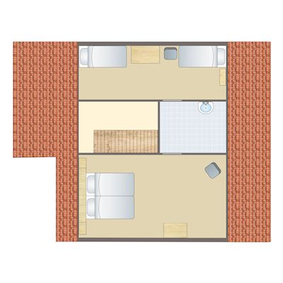 - Zwei Schlafzimmer mit jeweils zwei Boxspring-Einzelbetten auf der ersten Etage