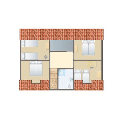 - Vier Schlafzimmer mit jeweils zwei Boxspring-Einzelbetten auf der ersten Etage