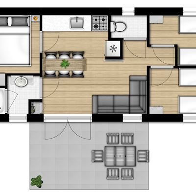 - Drei Schlafzimmer mit jeweils zwei Einzelbetten