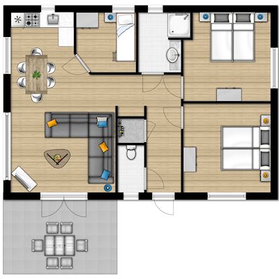 - Zwei Schlafzimmer mit jeweils zwei Einzelbetten