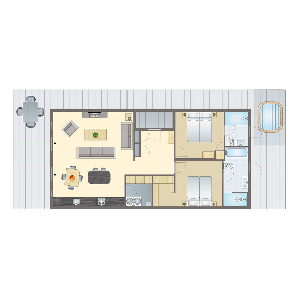 - Zwei Schlafzimmer mit Kingsize-Bett und 4K-Smart-TV