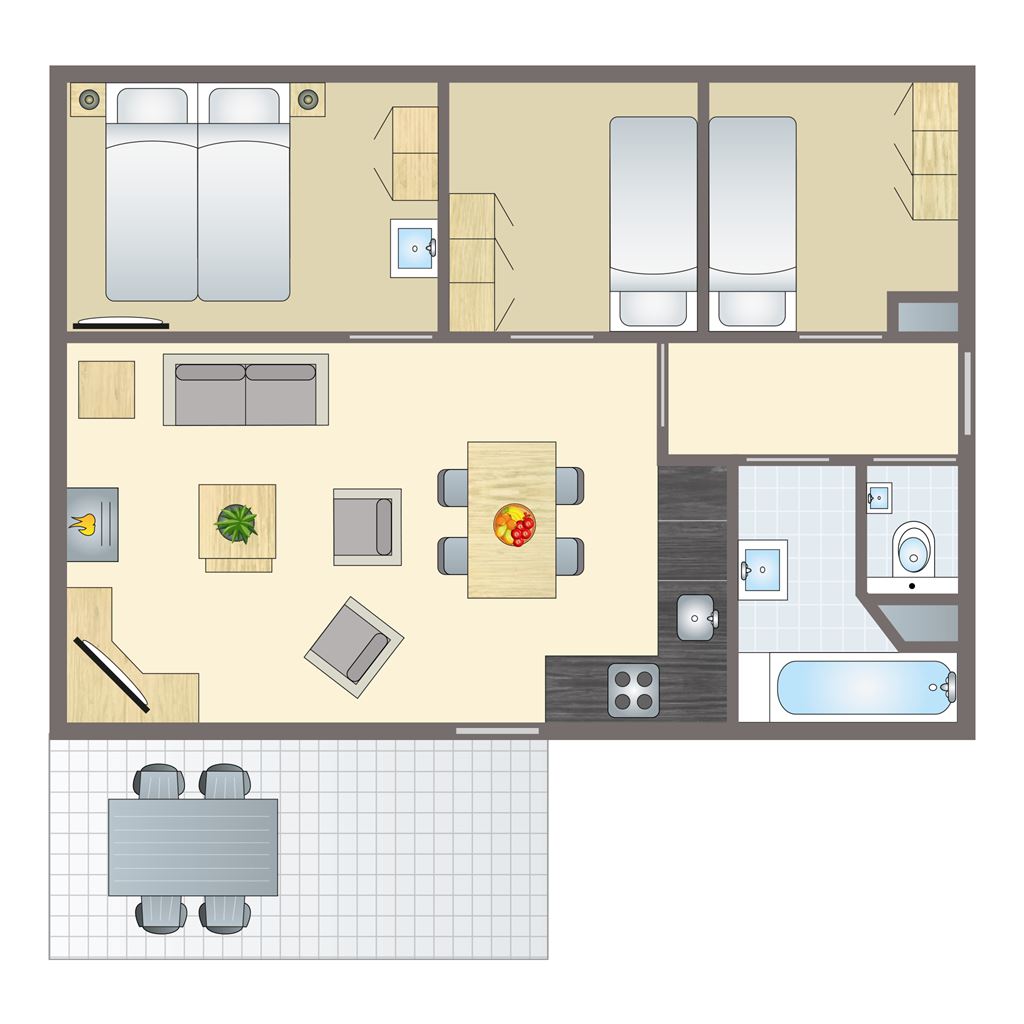 - Drei Schlafzimmer