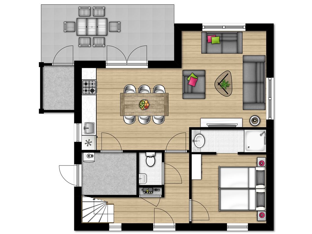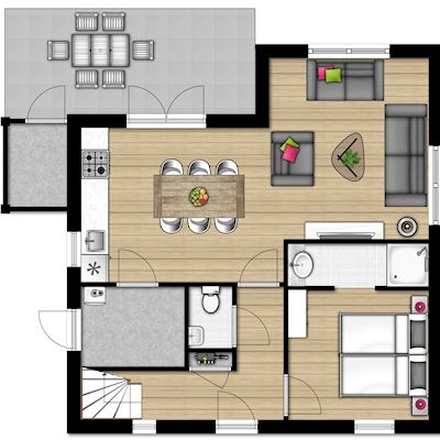 - Als Sonderwunsch buchbar: überdachte Terrasse