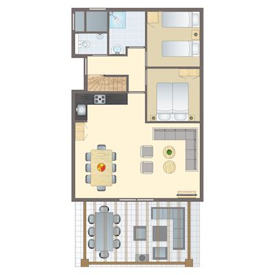 - Drei Schlafzimmer mit jeweils zwei Boxspring-Einzelbetten