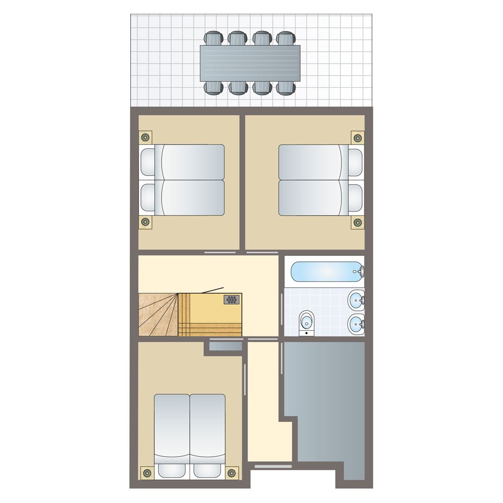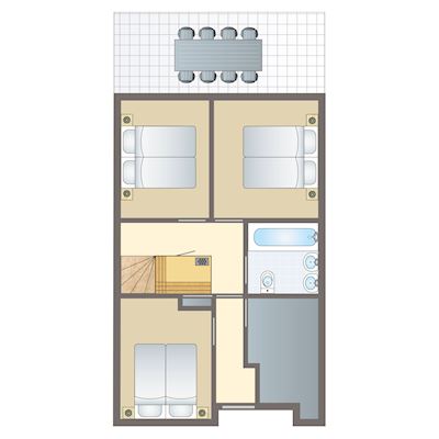 - Schlafzimmer mit zwei Einzelbetten auf der zweiter Etage