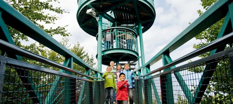 Auf zu einem abenteuerlichen Spaziergang durch die Baumkronen. Vom Baumkronenpfad aus starten mehrere markierte Wanderrouten und Schnitzeljagden. Kinder toben sich nach Herzenslust im Spielwald aus.