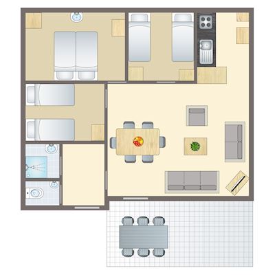 - Zwei Schlafzimmer mit jeweils zwei Boxspring-Einzelbetten