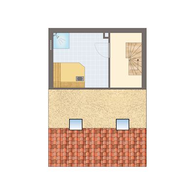 - Schlafzimmer mit zwei Boxspring-Einzelbetten auf der ersten Etage