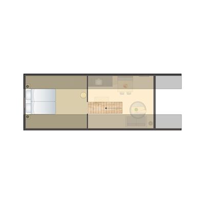 - Schlafzimmer mit einem Doppelbett und 2-Personen Softtopper