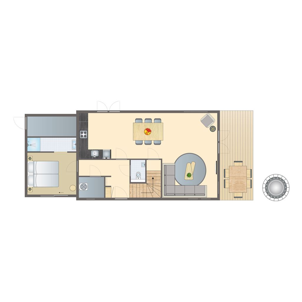 • Badezimmer (vom Schlafzimmer begehbar) mit ebenerdiger Dusche im Erdgeschoss