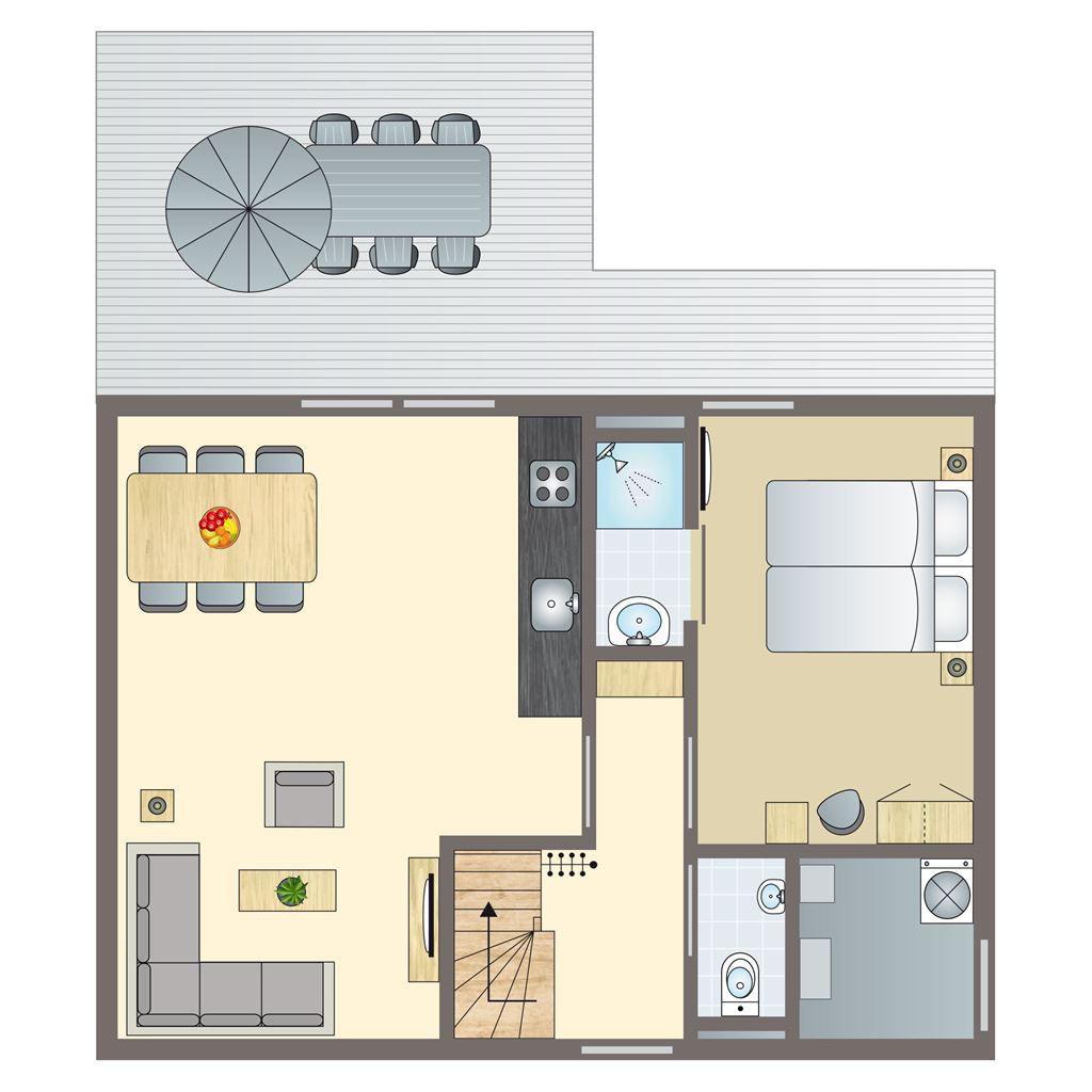 - Badezimmer mit Badewanne und WC auf der ersten Etage