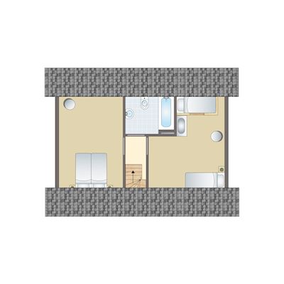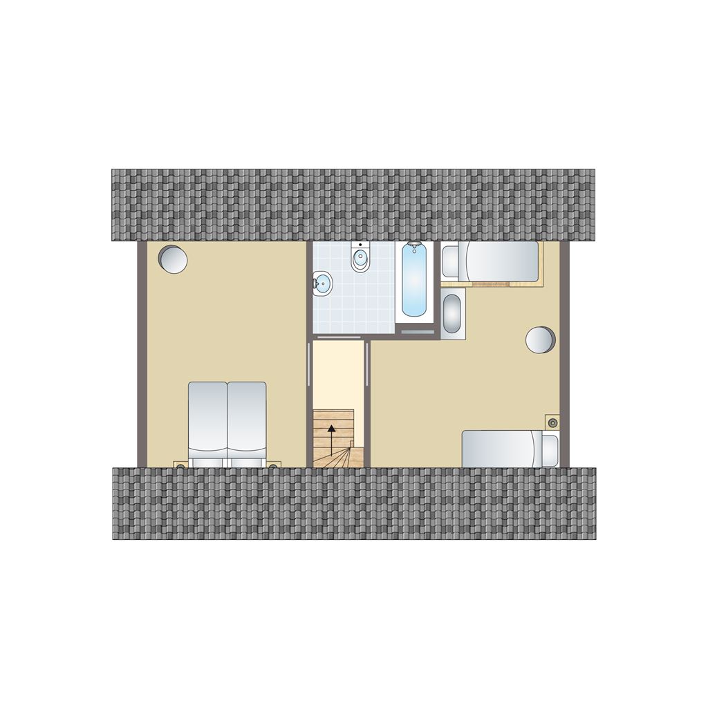 - Schlafzimmer mit zwei Boxspring-Einzelbetten auf der ersten Etage