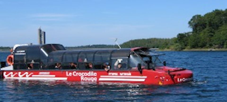 Entdecke die Seen von l'Eau d'Heure auf eine ganz besondere Art und Weise: in einem Fahrzeug, das sowohl auf dem Land als auch auf dem Wasser fahren kann. Und danach kannst Du im Le Crocodile Rouge noch viel mehr erleben, zum Beispiel Lasergames und Aquagolf.