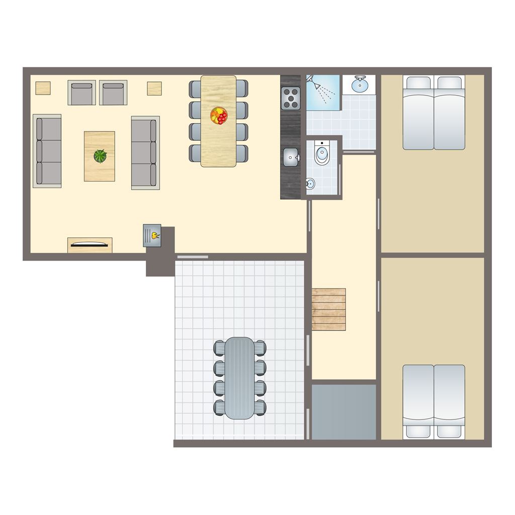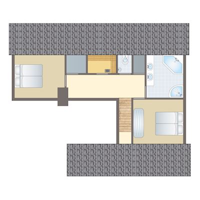 - Zwei Schlafzimmer mit jeweils zwei Boxspring-Einzelbetten auf der ersten Etage