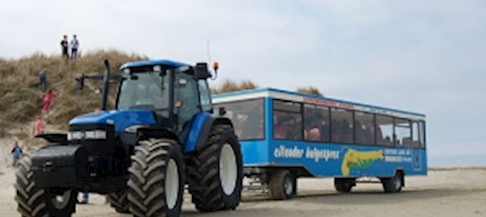 Mach eine Fahrt mit dem Traktor, der Dich mit seinem Busanhänger bis zur östlichsten Spitze der Insel bringt. Dabei erhältst Du Informationen über das Leben im Wasser und am Strand. Und vielleicht entdeckst Du dabei Meerestiere.