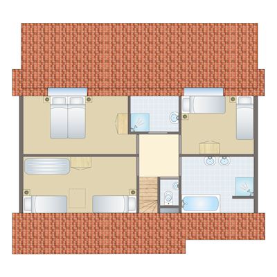 - Drei Schlafzimmer mit jeweils zwei Boxspring-Einzelbetten auf der ersten Etage