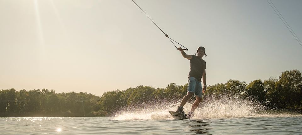 Möchtet Ihr etwas Neues ausprobieren? Landal Domein De Schatberg und Landal Stroombroek in den Niederlanden haben Wasserskianlagen direkt neben dem Park.